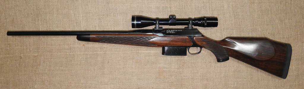 Details Barrel re-contoured, sights removed, 22 inches long with target crown / American Walnut Stock with Rosewood fore end tip / Glass bedded action / Trigger reworked to a crisp 2.5 lbs pull / Weaver Grand Slam steel bases / 1” Ring mounts by Burris Action / Bolt Magazine re-worked to ensure flawless feeding and ejection.