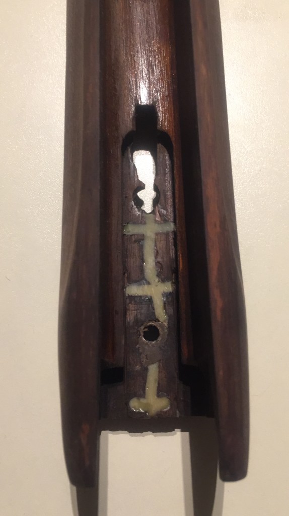 Reinforced the crack from the inside of the fore end – this portion is covered by the fore end iron.