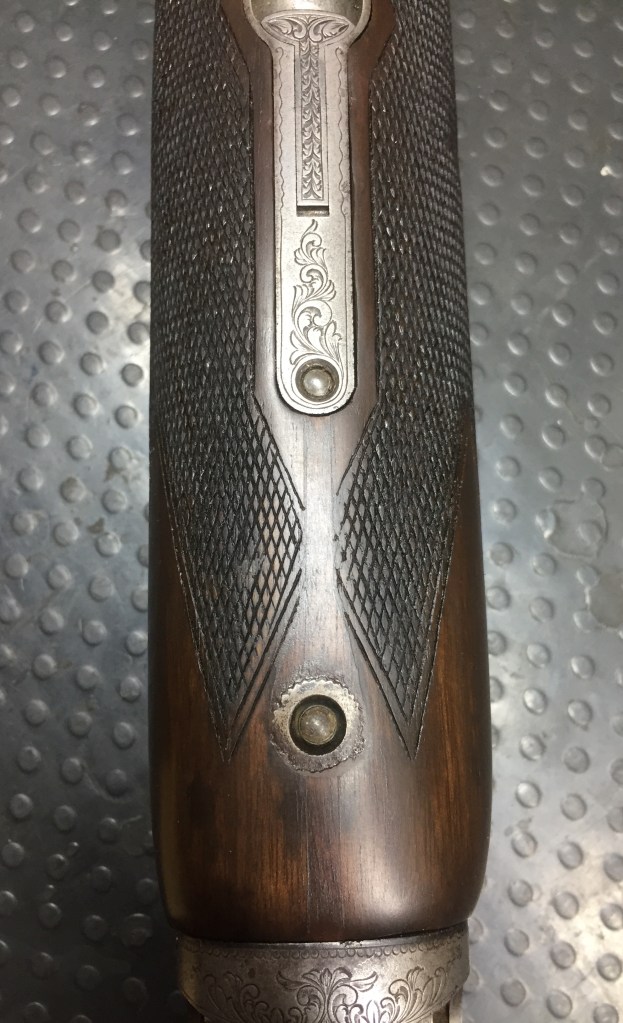 After staining and 4-5 coats of a hard wearing oil finish – before the checkering was re-cut and final finish applied.
